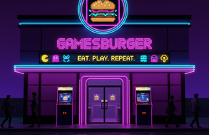 o ambiente é muuito interessante, misturando tematicas que eu gosto como games e meu lanche preferido, o hamburguer